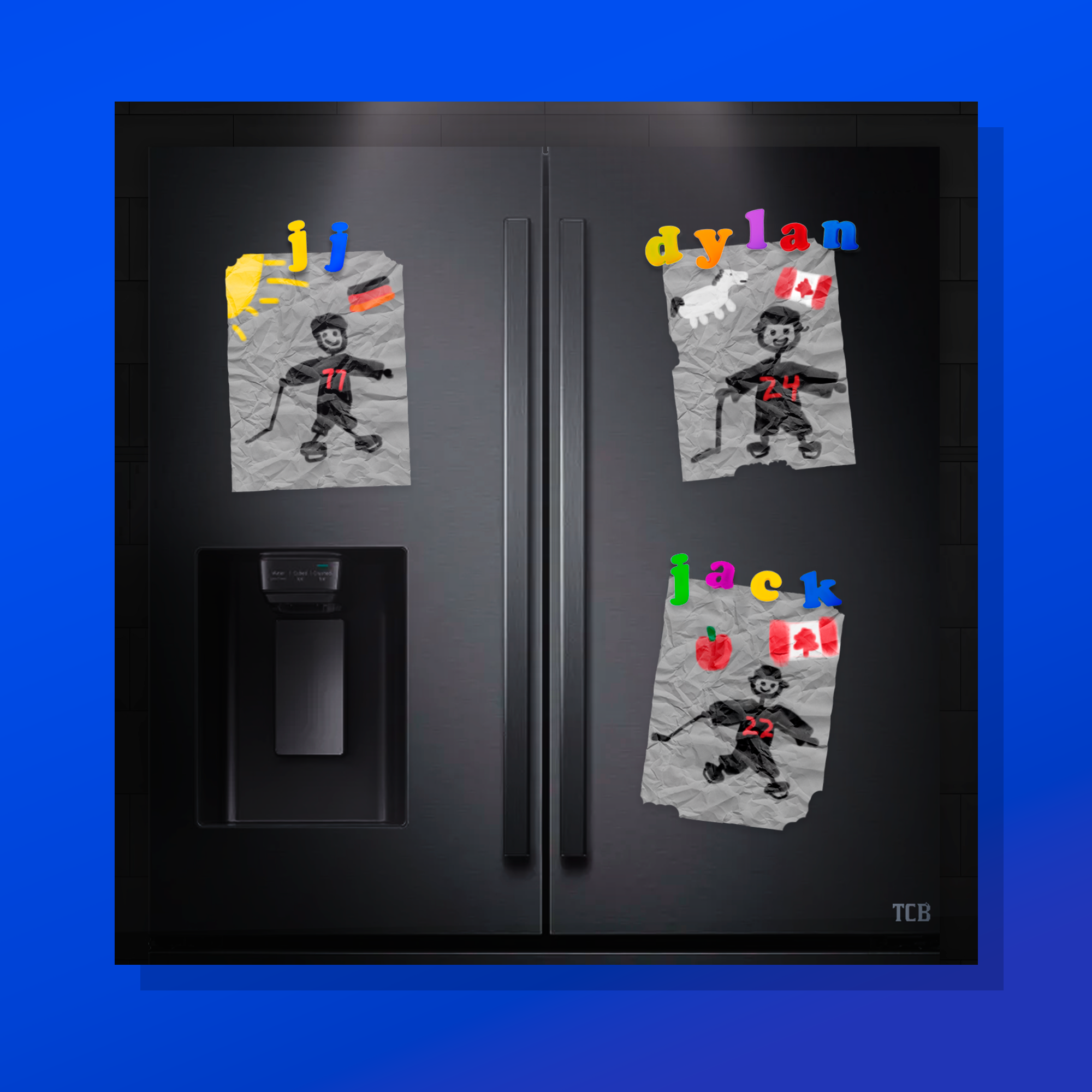A group of young Sabres players are called the “Kids Line,” so I designed a graphic to highlight the players but with child-like paintings that “made the fridge.”
